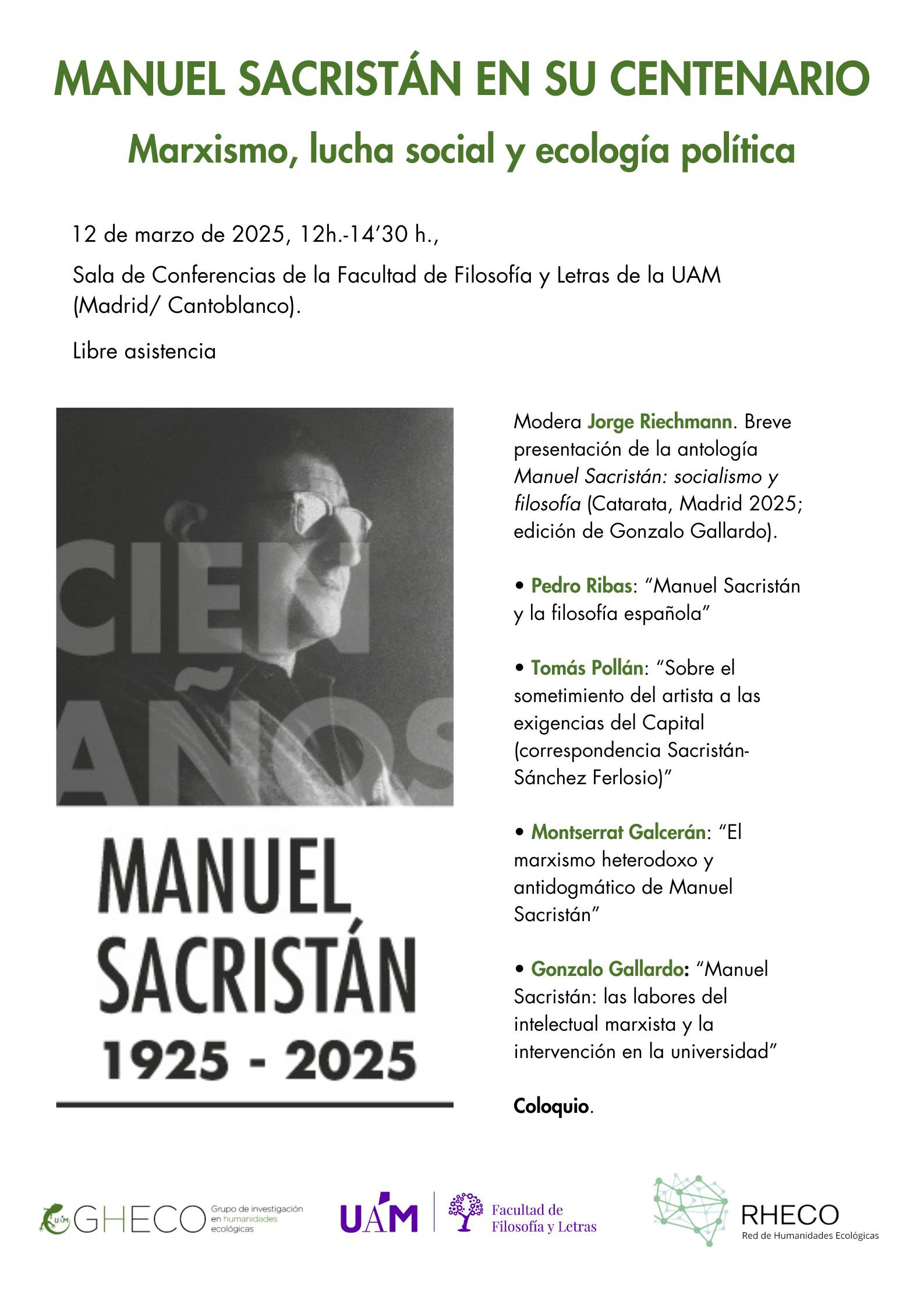 En la UAM, 12 de marzo. Centenario Manuel Sacristán