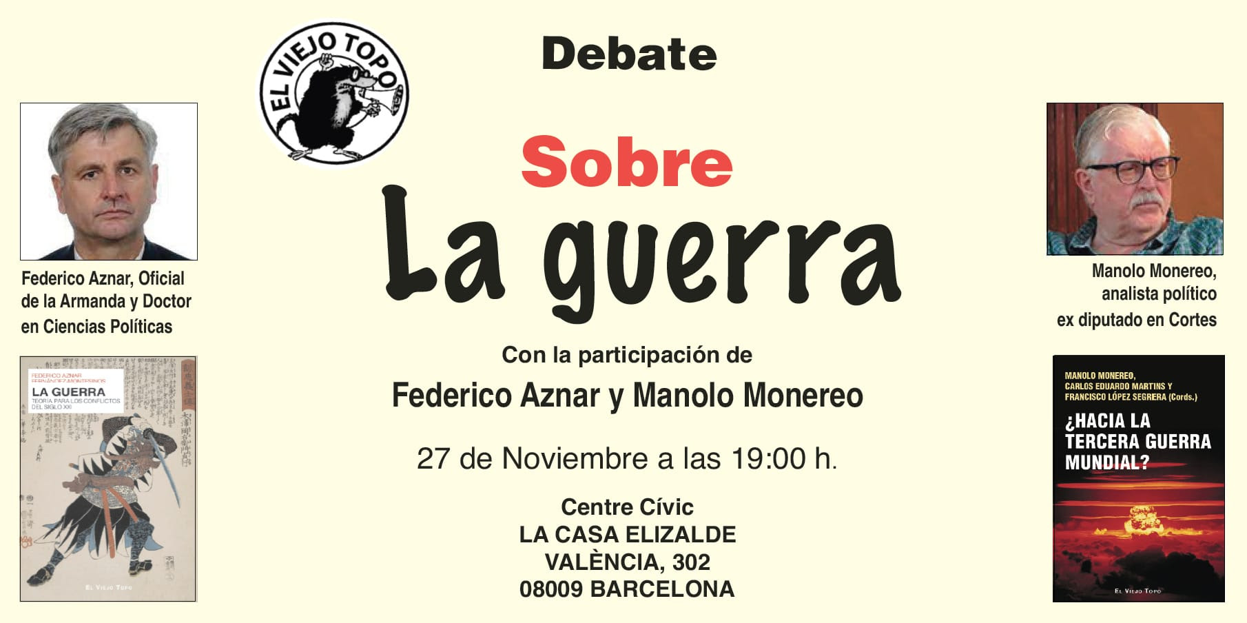 Debate sobre la guerra. Barcelona, 27 de noviembre Casa Elizalde Autor: admin Profesor jubilado. Colaborador de El Viejo Topo y Papeles de relaciones ecosociales. Lee todas las entradas de admin