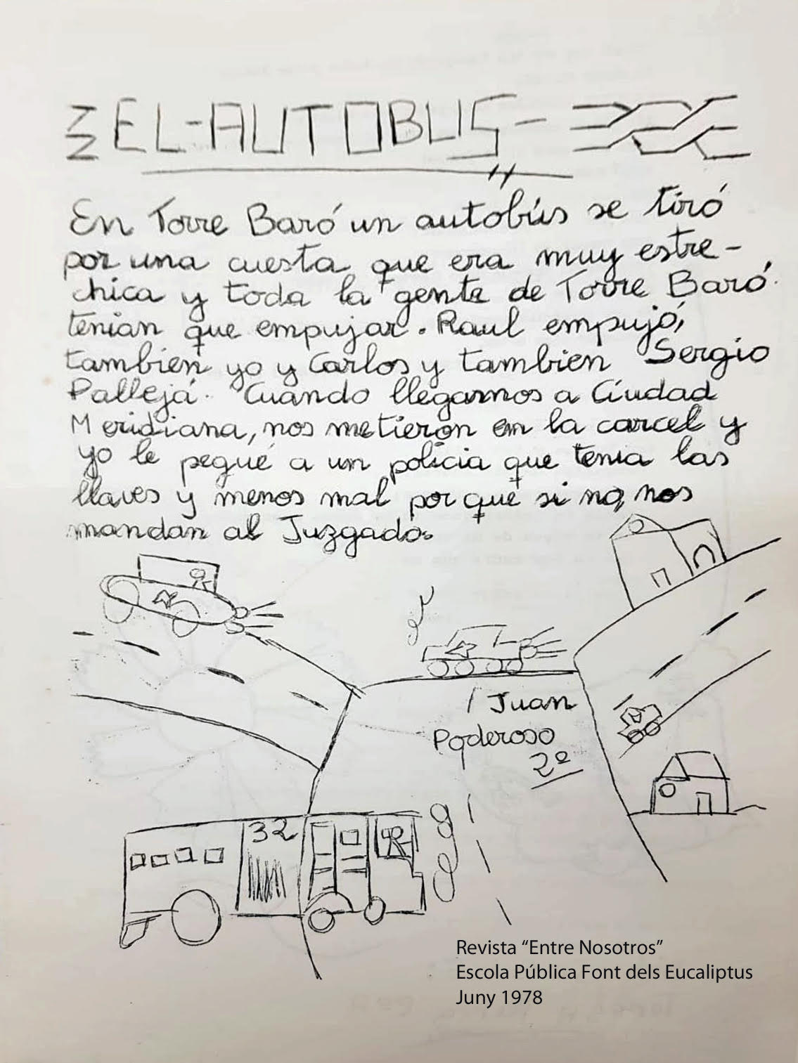 Nota de Núria Bergé (de Espai Marx): Disculpad que vuelva sobre el tema pero hoy he recuperado del archivo este texto de la revista de la escuela, a ciclostil, y me parece una pequeña muestra de cual era el «espíritu del 78» en Torre Baró y por otra parte me resulta saludable en este tiempo de belicismo encendido que no es el del niño que dice que pega al poli (actúa en legítima defensa).