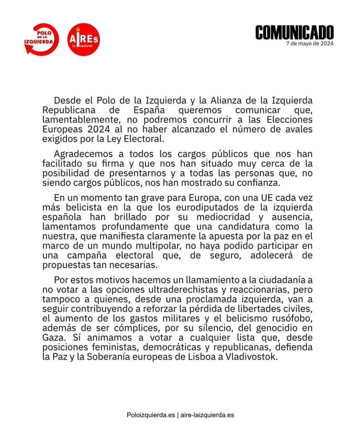 Elecciones europeas. Comunicado del Polo de la izquierda y de AIREs. Autor: admin Profesor jubilado. Colaborador de El Viejo Topo y Papeles de relaciones ecosociales. Lee todas las entradas de admin