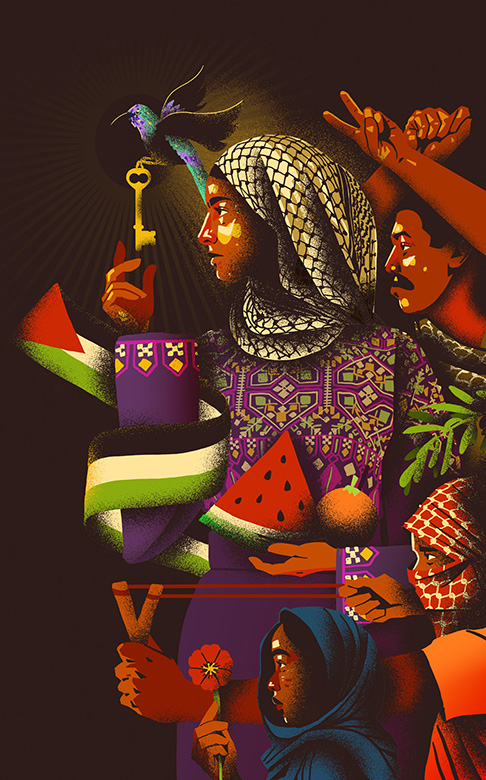 «Crecer como palestina en la diáspora», explica Sahhar, «es estar dotada de un tipo particular de superpoder, que consiste en comprender la enorme brecha entre una cultura dominante y lo que usted sabe que es verdad por las personas que ama y en las que confía».