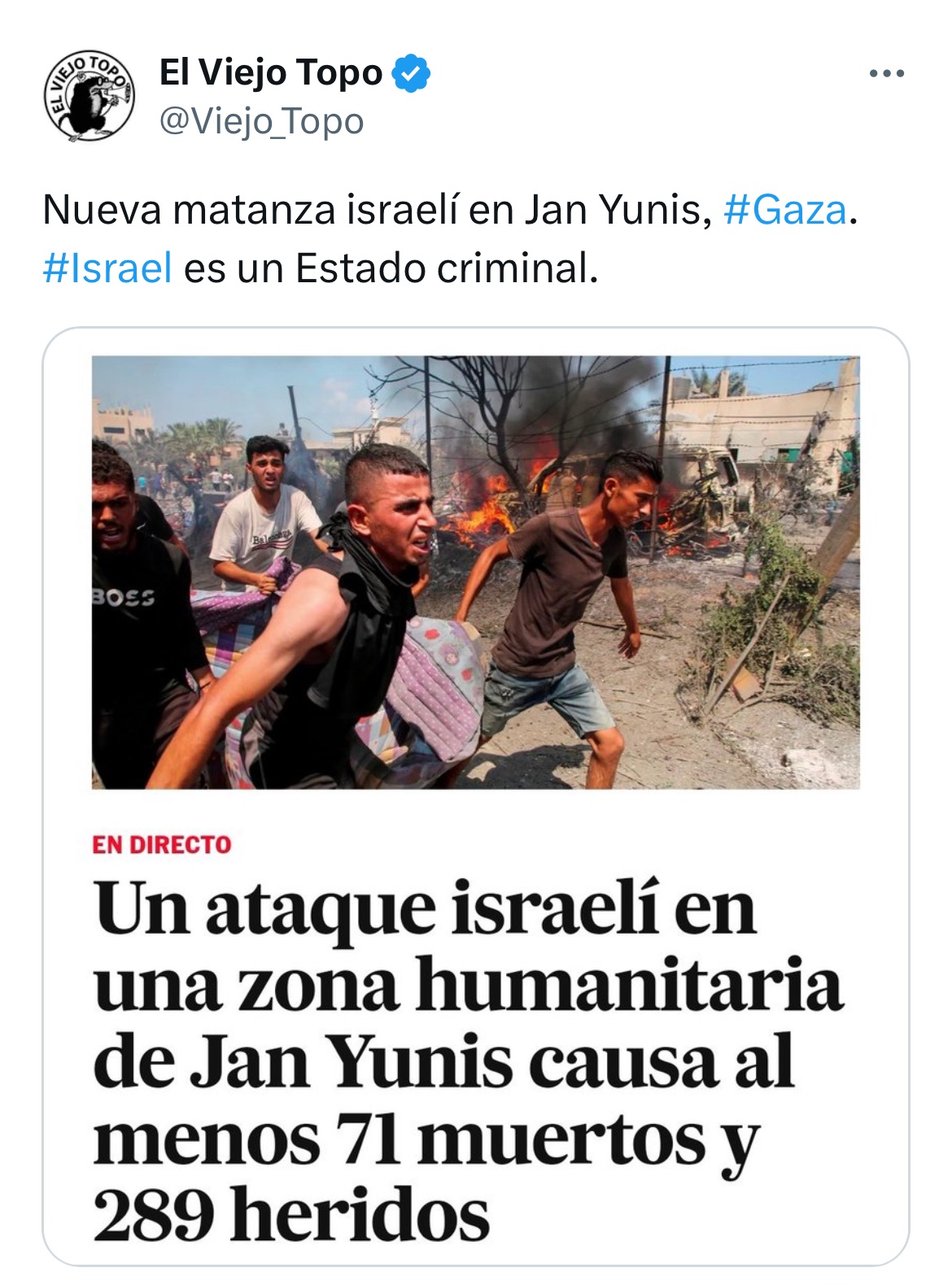 Nueva matanza del Estado sionista Autor: admin Profesor jubilado. Colaborador de El Viejo Topo y Papeles de relaciones ecosociales. Lee todas las entradas de admin