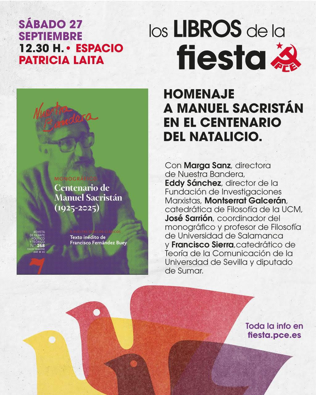 Publicado en rebelión, 20/09/2025. En esta nueva entrega del Centenario Manuel Sacristán publicamos una reseña del libro de Gonzalo Gallardo Blanco publicada en Nuestra Bandera (268).