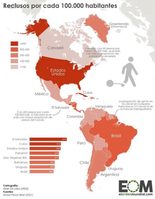 Reclusos por cada 100.000 habitantes (Países del continente americano) Autor: admin Profesor jubilado. Colaborador de El Viejo Topo y Papeles de relaciones ecosociales. Lee todas las entradas de admin